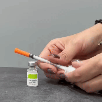 ویال را سر و ته نگه دارید و ۰.۵ میلیلیتر دارو را داخل سرنگ بکشید.